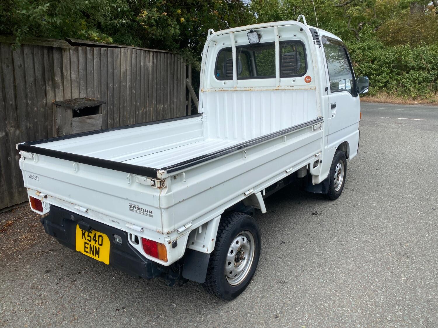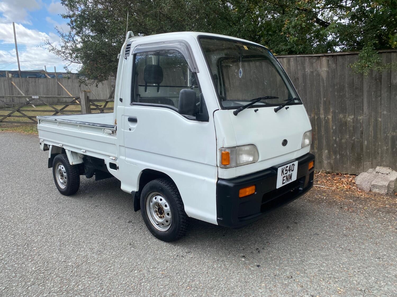 Just arrived in stock this superb little Subaru Sambar Kei truck with only 33,000 miles from new. Has just had a service and cambelt and runs superbly! A great little retro Kei truck in an original untouched condition, the underside is in superb condition throughout and has never seen a UK winter! Starts first time and drives as it should with working 4WD system.